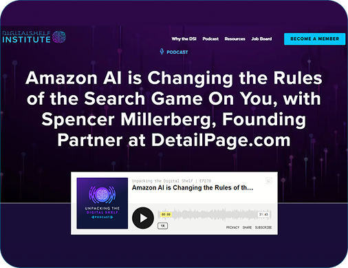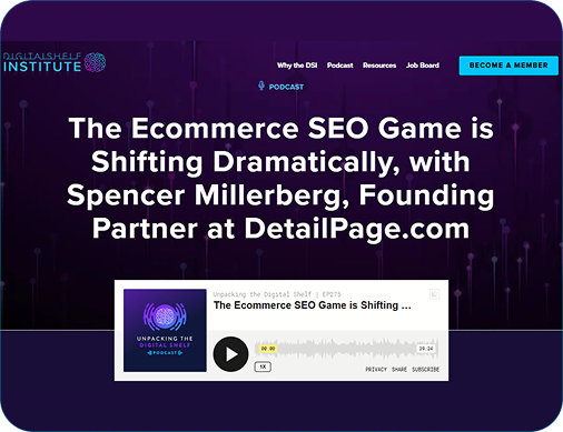Did you know over 70% of traffic to a detail page is organic? Now that you are aware, do you know what you need to do to win your share of that traffic, and hopefully some of someone else's? The answers to that question have changed right underneath our feet, and winning has become much more of a science than an art than ever before, driven by the power of AI. Spencer Millerberg, who changed the ecommerce game once before with OneClick Retail, is now at it again as Founding Partner of DetailPage.com. He joins the podcast with the facts and figures around the changing game of Ecomm SEO.
